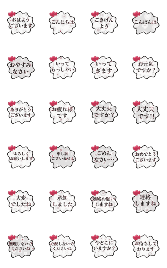 キラキラ動く赤ハート水玉吹き出し!敬語丁寧挨拶大人可愛いデカ文字シンプル白黒モノトーン連絡どこ心配しないで承知しました申し訳ございません光る大変ママ友女子大丈夫?