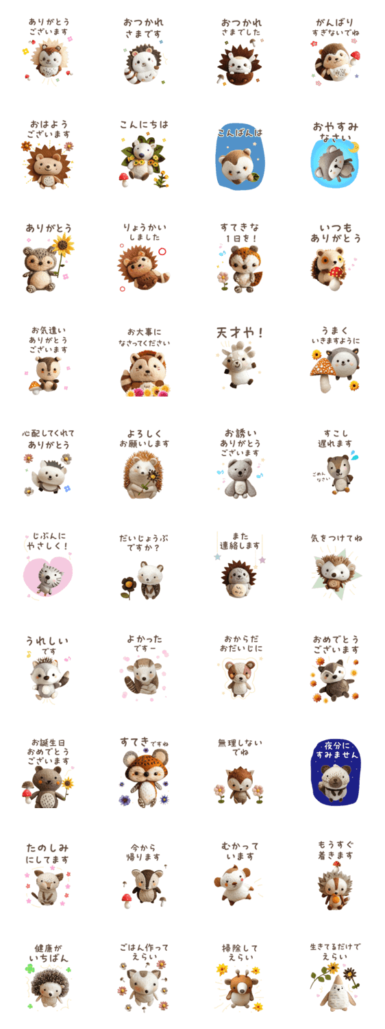 思いやりあふれるやさしい言葉と温かみのある動物たちのほのぼの癒されスタンプです!大きめの文字で目にやさしい♪#ハリネズミ #挨拶 #敬語 #ゆるい #小動物 #シニア #老眼 ※このスタンプはトークルームで大きく表示されるBIGスタンプです。