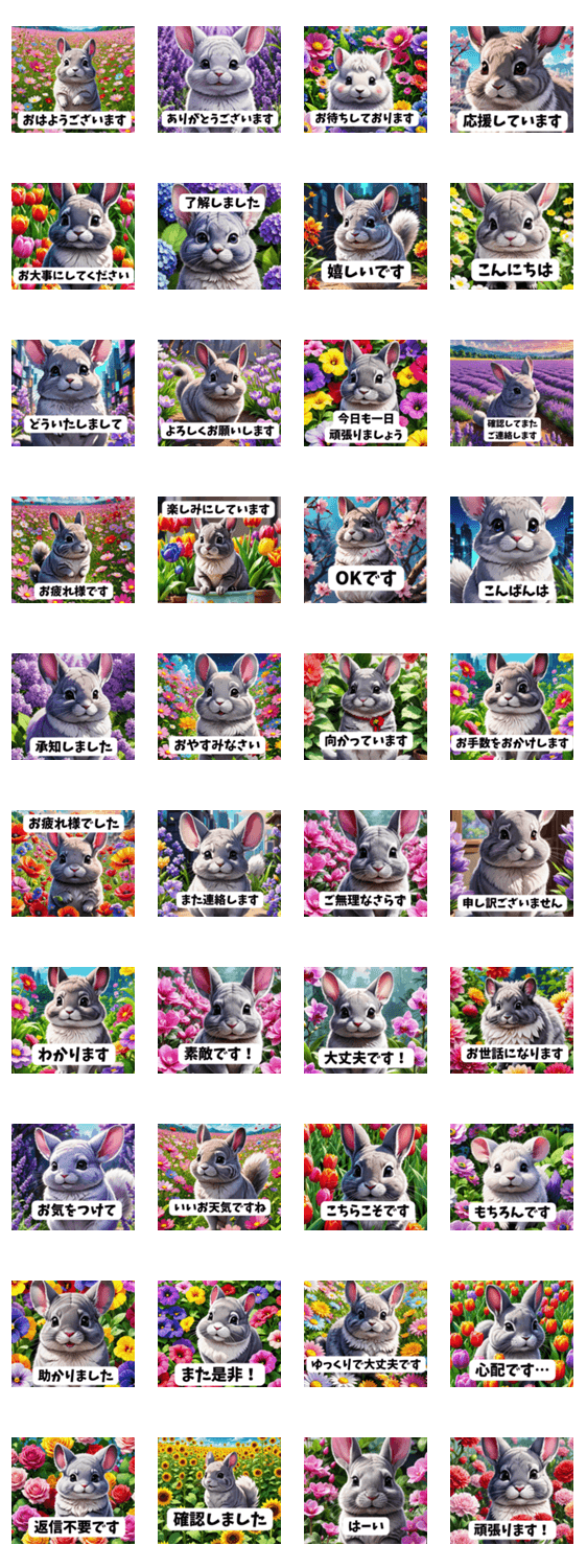 お花畑とチンチラの、使いやすい敬語のスタンプです。