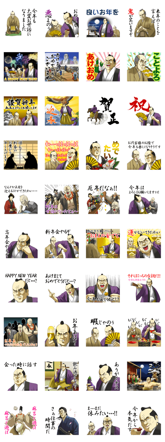 | スタンプ説明 | おぬし年末年始も悪よのぅ!Happy new year、あけましておめでとうございます、今年もよろしくなど新年の挨拶に使える「悪代官の悪だくみ」シリーズお正月特別編! |