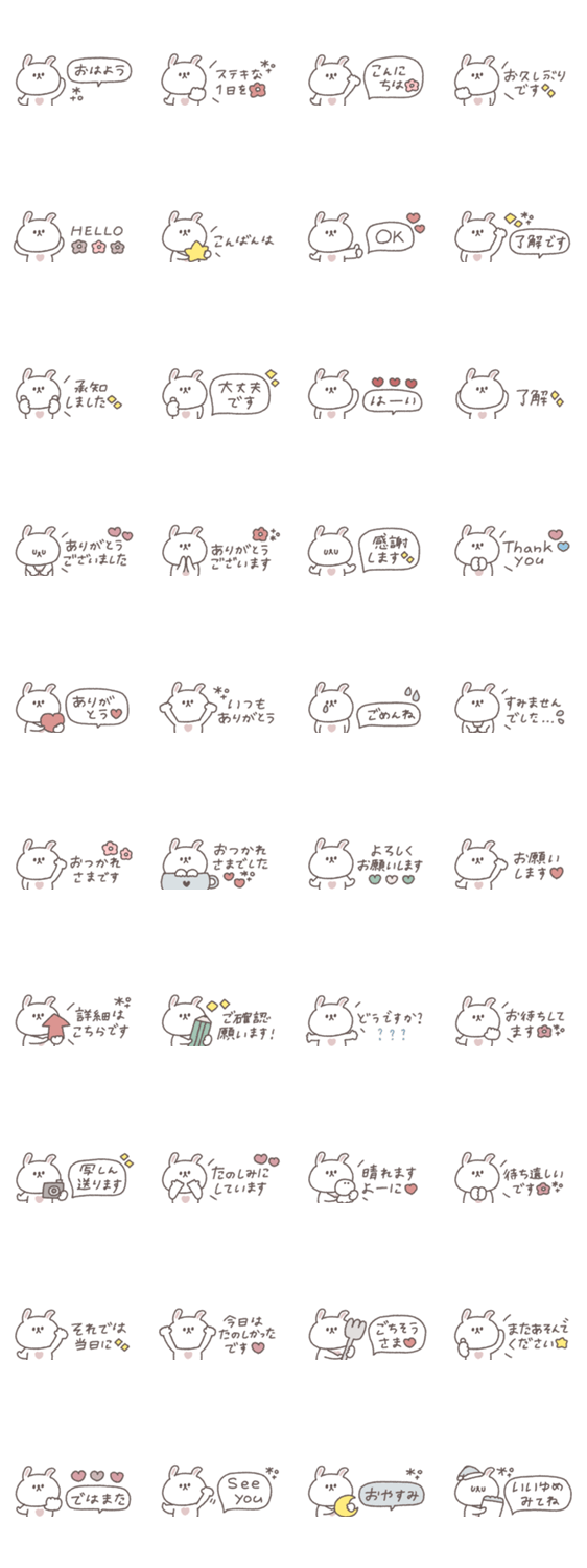 一つあると便利な小さくてかわいいうさぎのスタンプです。 うさぎ/大人可愛い/シンプル/あいさつ/吹き出し/くすみカラー/省スペース