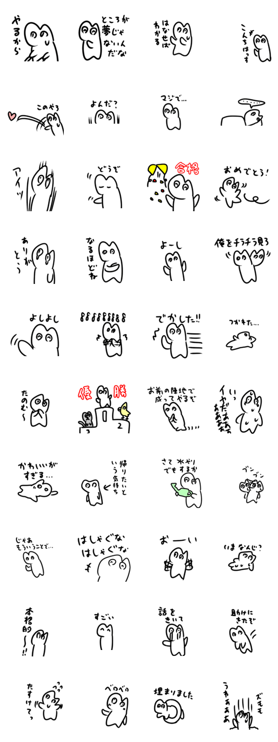 白ネコのあいうえお・・・ってるスタンプ