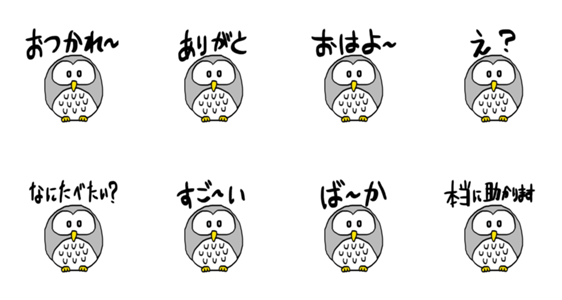 スタンプ説明 無表情なふくろう先輩のあいさつとか。お試し版。