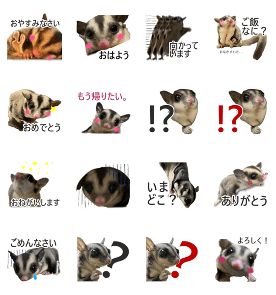 かわいいフクロモモンガのスタンプ!表情豊かな姿で、LINEを楽しく、感情豊かに。日常のコミュニケーションを一段と楽しくする、このスタンプをぜひご利用ください。