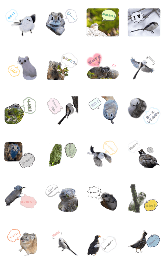 シマエナガ・モモンガなど、北海道のかわいい動物達がしゃべっているスタンプです!