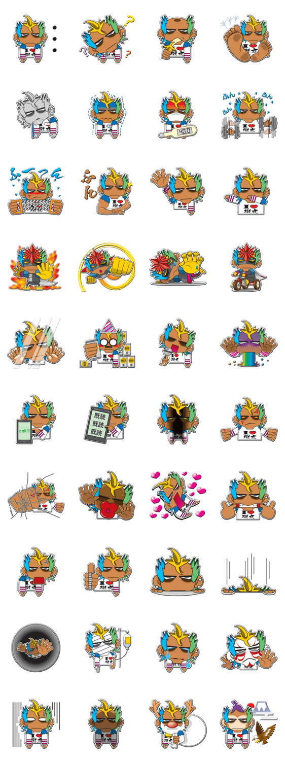 | スタンプ説明 | 時には、徹夜大好き野郎。時には、ちょっとまぬけな正義のヒーロー。その正体は、徹朗。 |