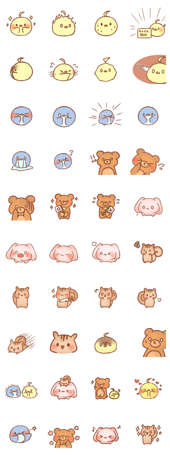 オリジナル漫画「ひとすくいの色」に登場する、ゆるい動物達のスタンプです。
