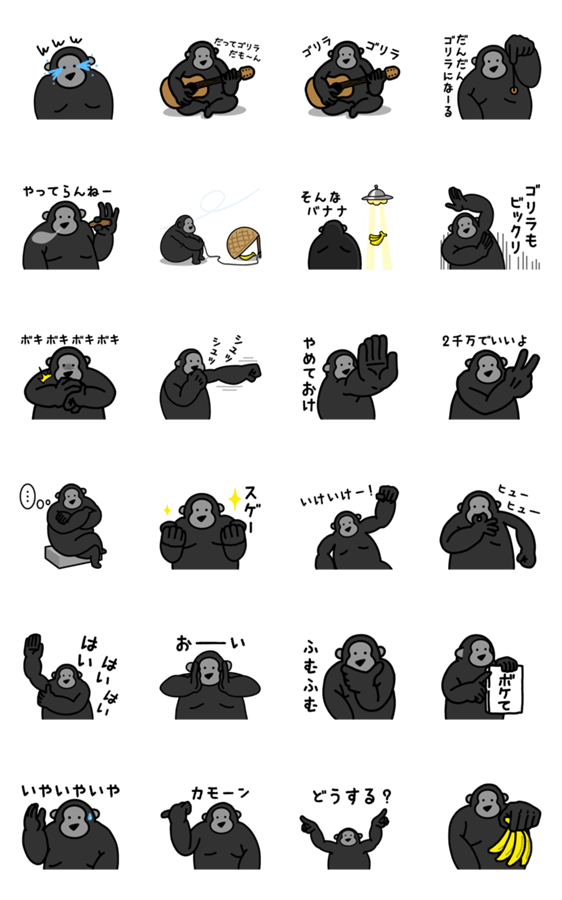 どこか憎めないシュールでゆるいゴリラ。バナナ大好き。けっこう激しく動く。