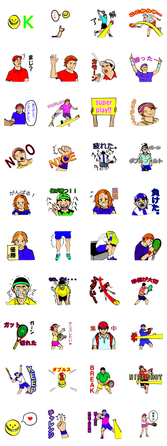 テニスが好きな方が日常会話や試合を見ながら使えるスタンプです。色んな方に使っていただければ幸いです。