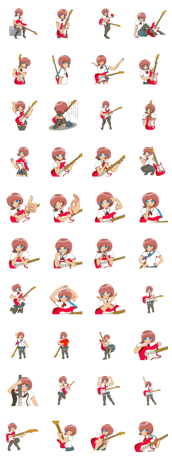 エレキギターを片時も離さない、エレキギター大好きな女子がいっぱいつまったスタンプです。