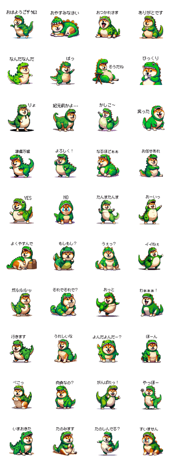 恐竜になった ふとっちょ柴犬 ガオー -LINEスタンプマニア