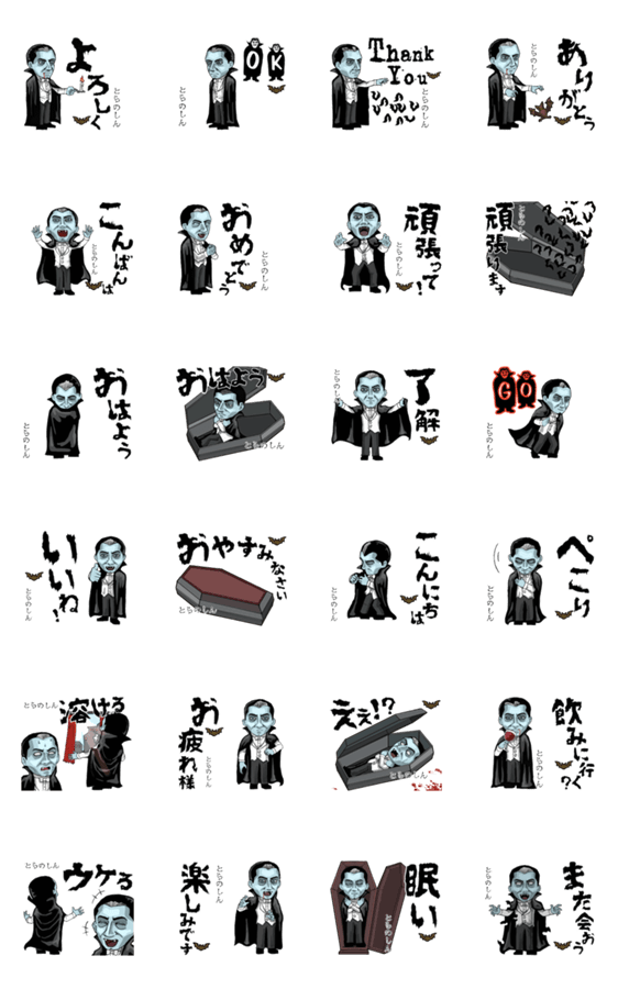 「とらのしん」専用吸血伯爵です。「もっと動く⚰️☠️ドラキュラ」がベースの動くスタンプ。/ホラー/ハロウィン/ゾンビ/アンデッド/ヴァンパイア/吸血鬼/コウモリ/ゴシック