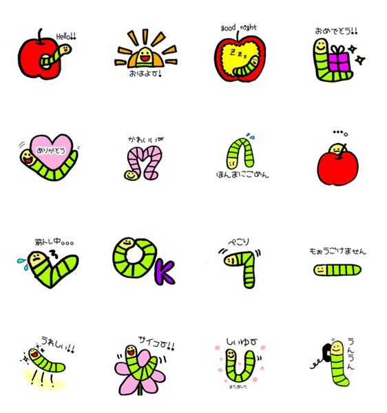 LINEスタンプメーカーで作りました。蝶になりたいイモムシのスタンプです。