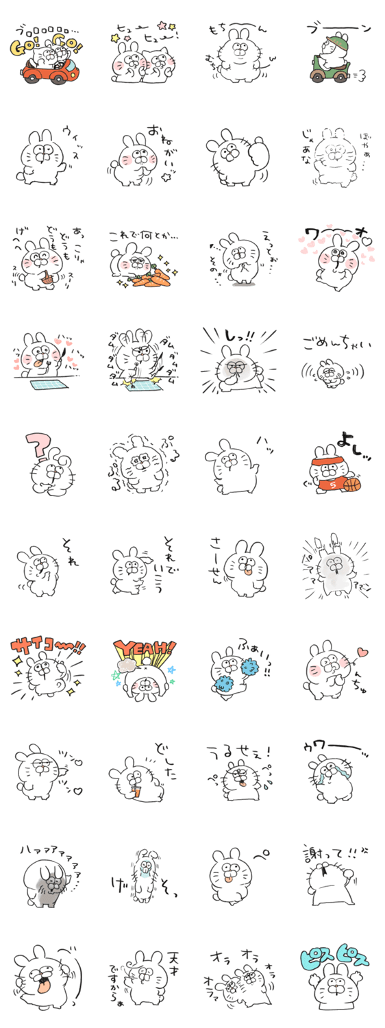 うしゃぎさん第三弾。シュールでかわいいうしゃぎ時々にゃすのスタンプです。