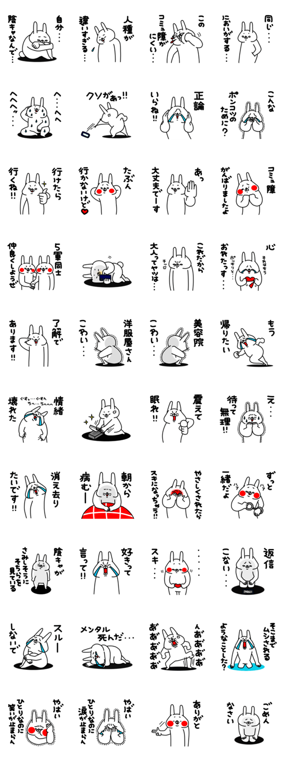 全力でうざい全力でおちょくるあざとかわいいうさぎが弱気で陰キャでコミュ障で人見知りでメンタル最弱。家族や友達、恋人に使えるポンコツ日常闇落ちかまってスタンプ。