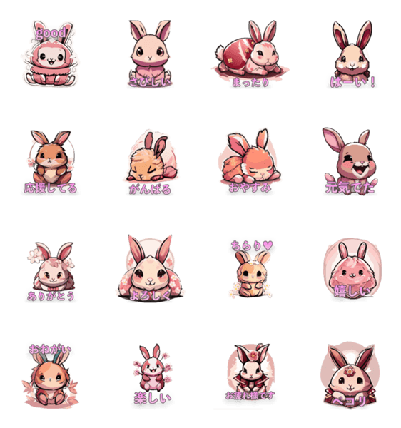 春を感じさせる桜色のウサギさんがさまざま表情をイラストにしました!メッセージは普段使い抜群のスタンプに仕上げました。