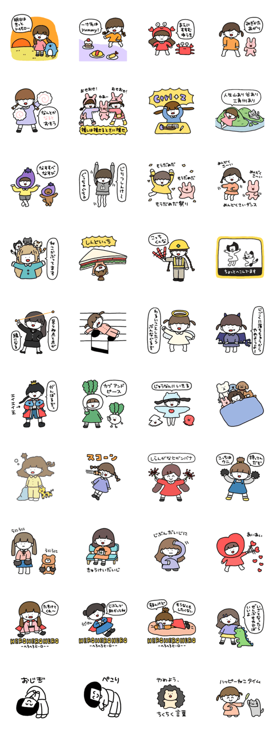愉快で楽しくてかわいいイラスト作品をつめこんだ最高なスタンプです、たくさん使ってね!!!!