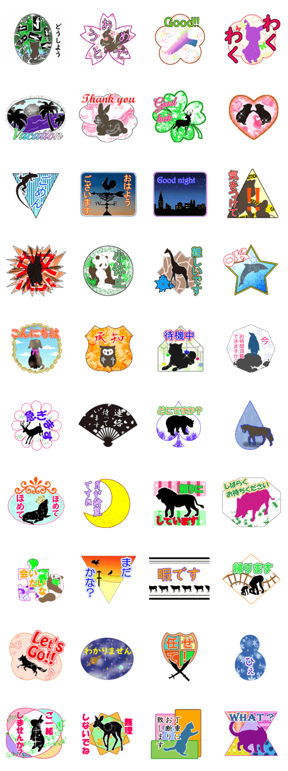 スタンプ 影絵 風景 シルエット 動物 かわいい