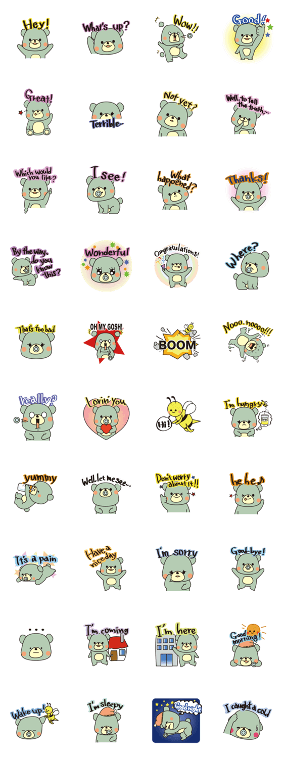 英語であなたの気持ちを伝える、赤ちゃんクマの“ベビクマちゃん”!日常使いで使いやすいよ!英語の勉強にもなっちゃうかも!?