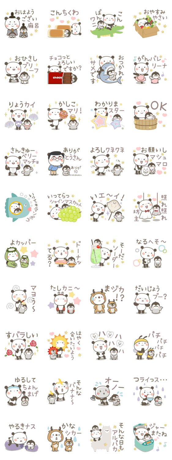 大人可愛いぱんちゃんとゆるぺんの日常で使えるだじゃれを集めたスタンプです。