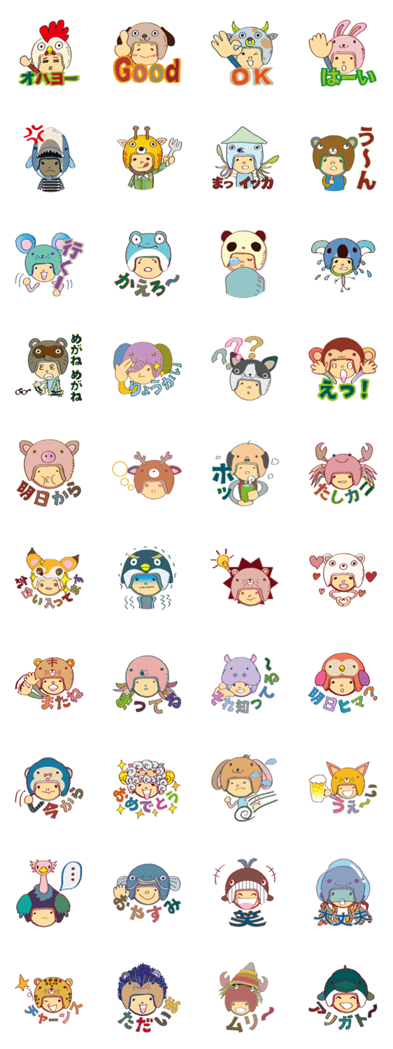 やまびこやまの動物ヘルメット友達 -LINEスタンプマニア