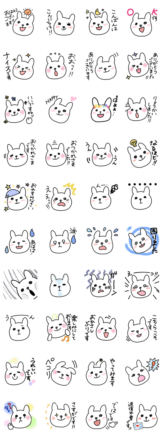 スタンプ説明 日常の挨拶で使えるウサギスタンプ