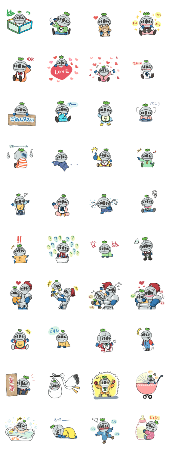 正義の兵士くんシリーズの番外編スタンプ。兵士くんの赤ちゃんがあなたに愛をお届けいたします。シンプルで使いやすいので、ぜひ使ってみてください。