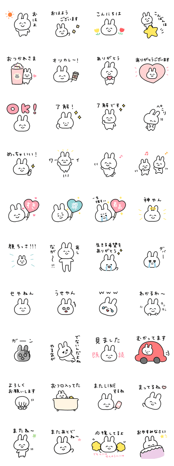 気軽に使えるゆるうさぎスタンプです。毎日の挨拶や推し活にも。