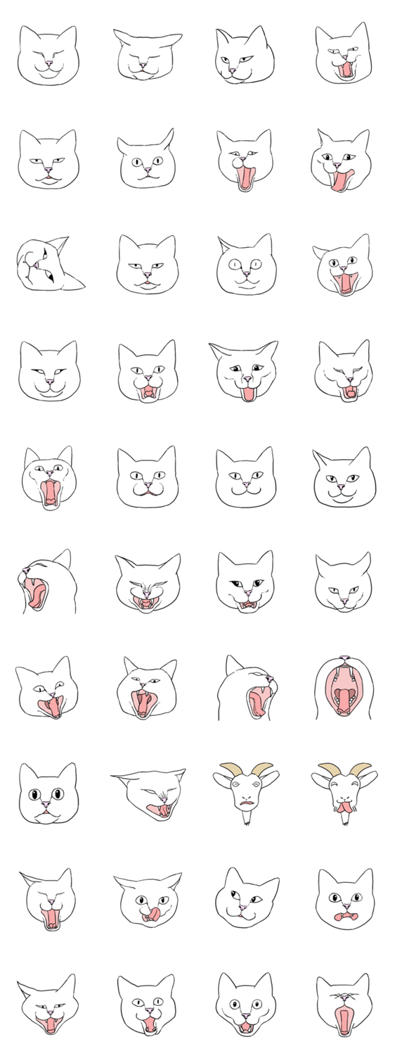 猫ミーム風の面白い表情をする白猫スタンプです。ネコ好きにおすすめ。