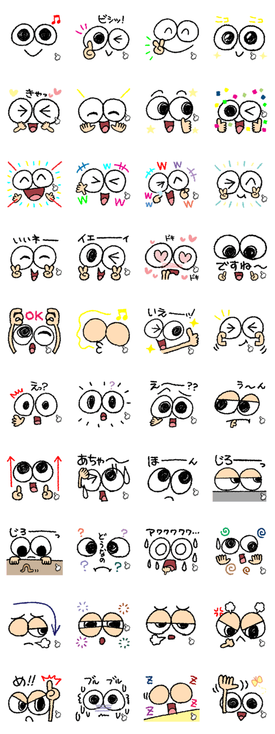 スタンプ説明 大きな瞳の可愛いリアクション。
