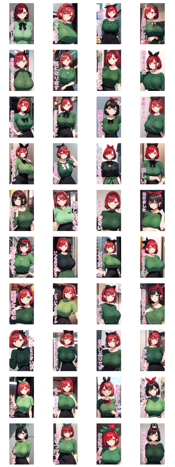 | スタンプ説明 | アニメキャラクター、甘い女の子、日常用語。 ※このスタンプはトークルームで大きく表示されるBIGスタンプです。 |
