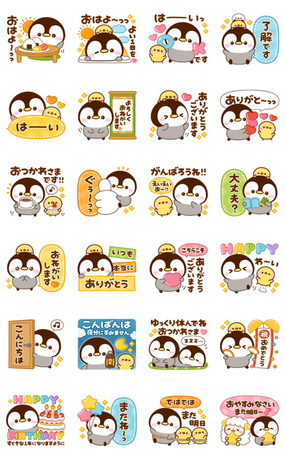 小さなペンギンの赤ちゃん♡ぺんぺんが画面いっぱいに可愛く飛び出すポップアップスタンプです。毎日の会話や挨拶に役立つ言葉がいっぱい♡