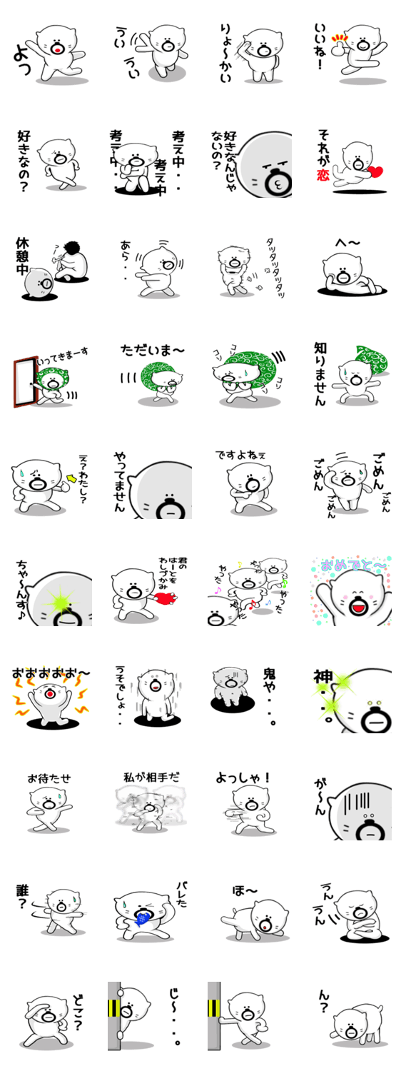 白ネコのあいうえお・・・ってるスタンプ