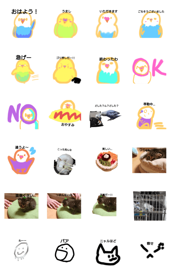 セキセイインコの一日スタンプ(増えたよ)