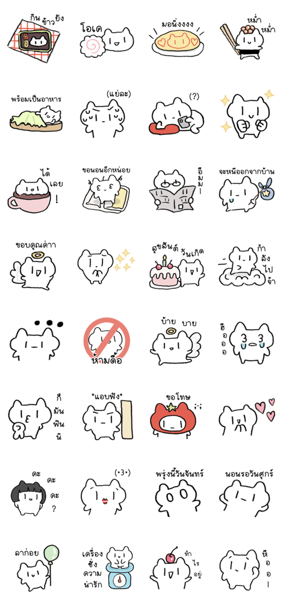 白ネコのあいうえお・・・ってるスタンプ