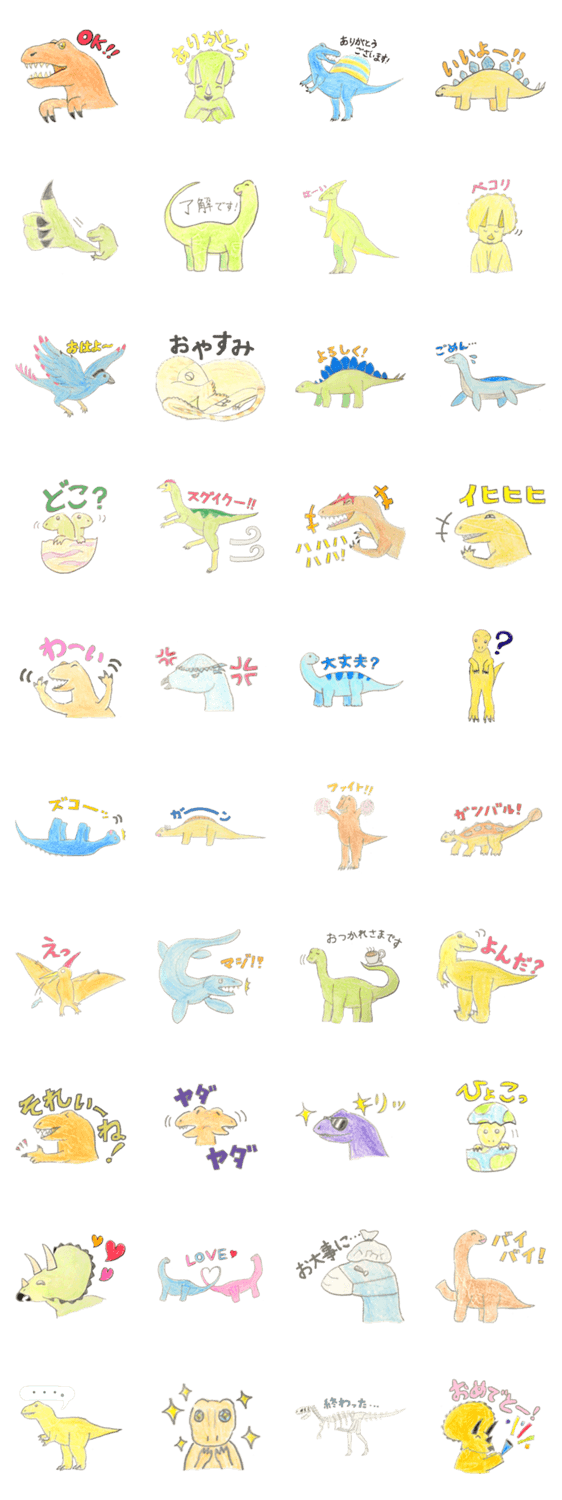 かわいい恐竜たちの、ユニークで使いやすいスタンプです。