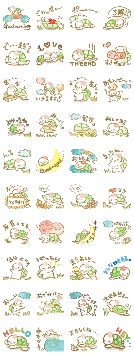かわいい、かめCammyのスタンプです。皆様にこのスタンプを使っていただけるとCammyも嬉しいです。是非皆様の日常に少しでも笑顔がありますように。。。