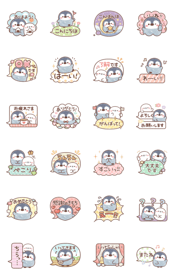 フキダシの中でペンちゃんが可愛く動いて気持ちを伝えるよ♪