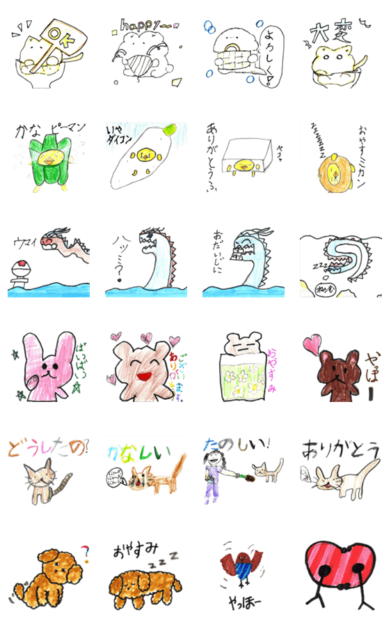 絵画教室「アトリエegg」の子どもたちが描きました! とっても楽しくとっても素敵なスタンプたちです♪売り上げは子ども食堂など、子どものための活動支援に活用します。