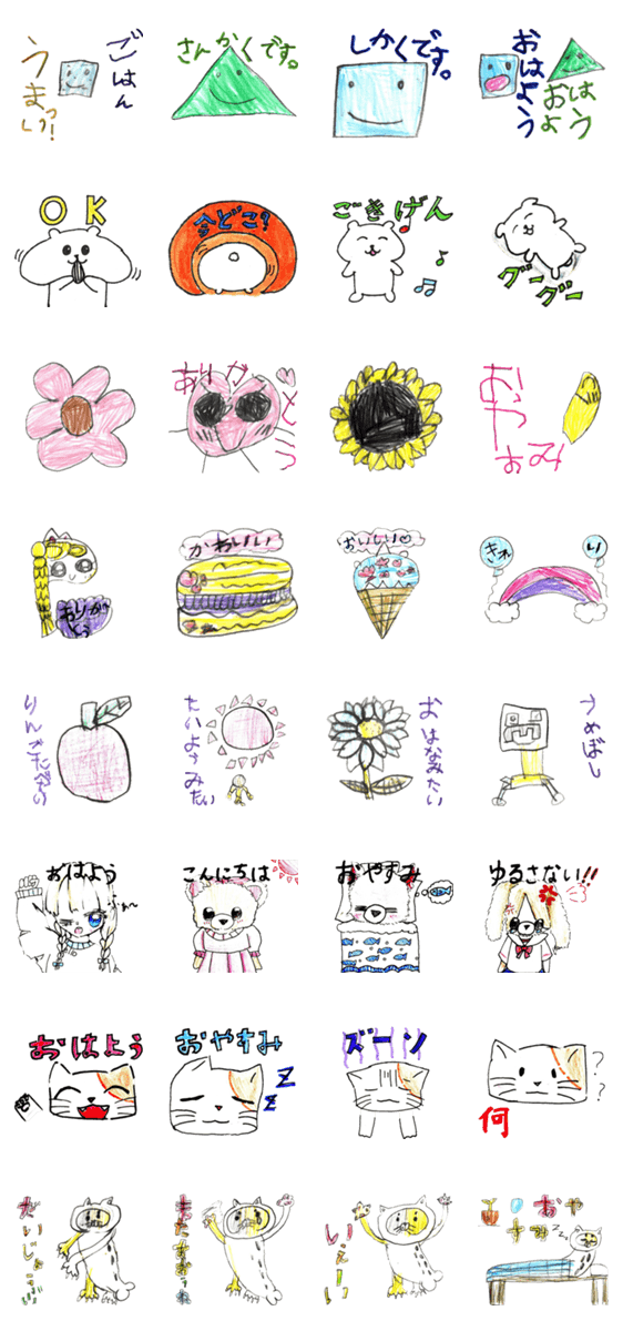 アトリエeggの児童画作品<水曜日Aさん> -LINEスタンプマニア