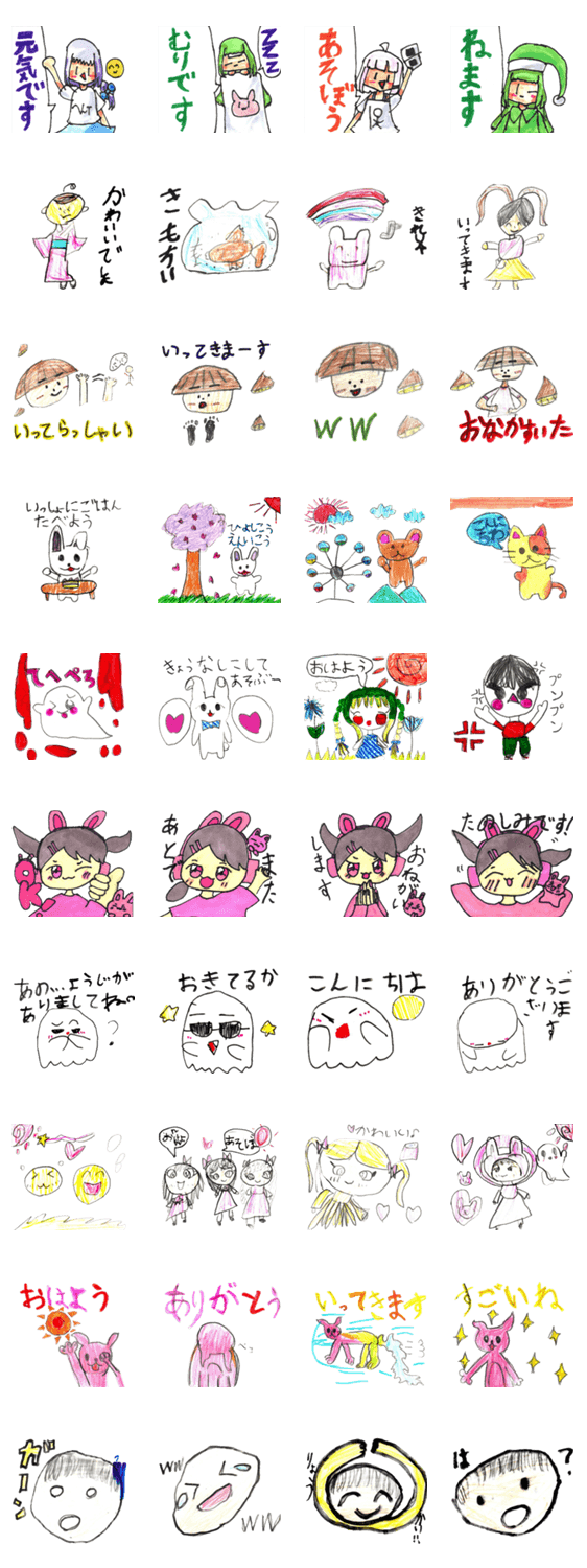 絵画教室「アトリエegg」の子どもたちが描きました! とっても楽しくとっても素敵なスタンプたちです♪売り上げは子ども食堂など、子どものための活動支援に活用します。