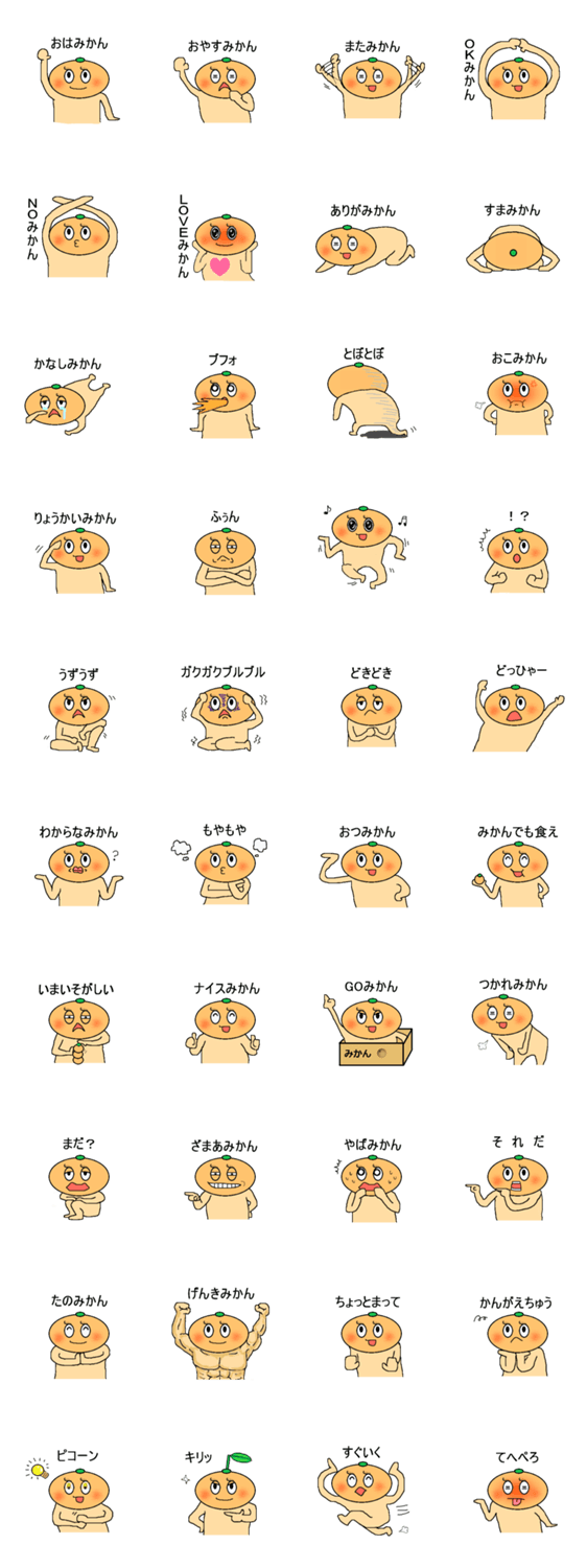 みかんから生まれた元気なみかんの妖精のスタンプです。