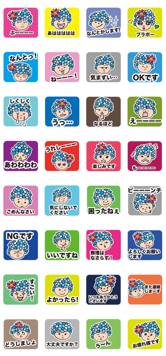 頭がつぶつぶしたキュートなキャラクターが、日常のメッセージを届けます。