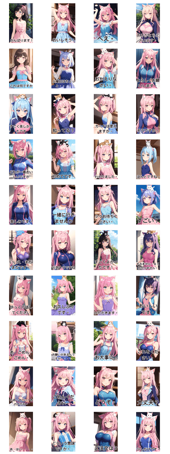 | スタンプ説明 | アニメキャラクター、甘い女の子、日常用語。 ※このスタンプはトークルームで大きく表示されるBIGスタンプです。 |