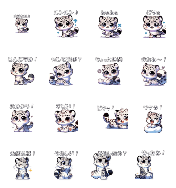 ユキヒョウ(雪豹)のかわいい日常を描いたスタンプです。