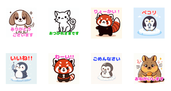スタンプ説明 汎用性の高い、可愛い動物たちのスタンプです。
