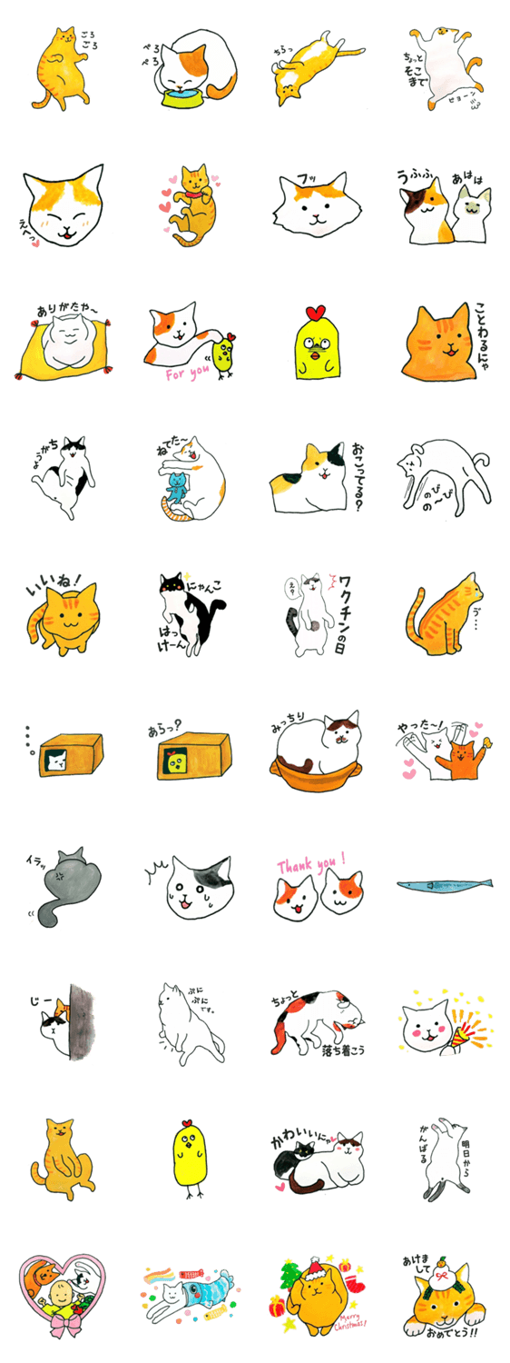毎日まったり過ごすわしのにゃんずたち。ぶっちょんかわいいスタンプじゃ。