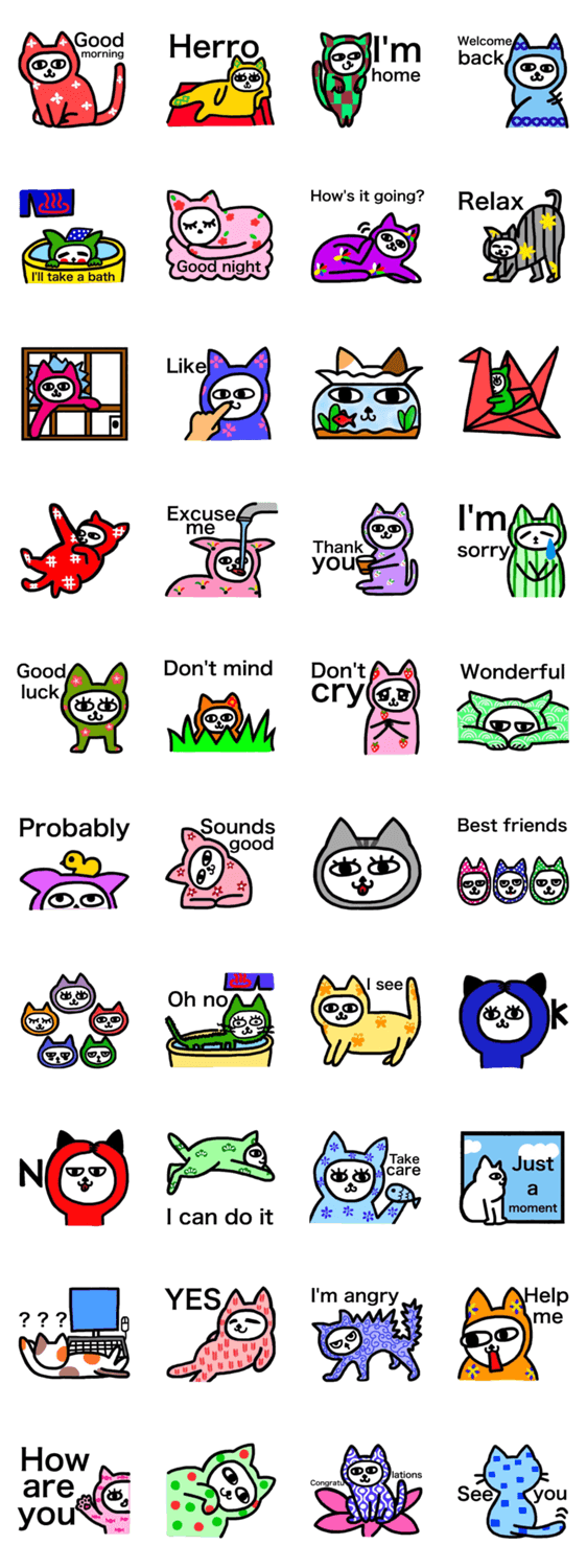 日本風な模様のねこちゃん -LINEスタンプマニア