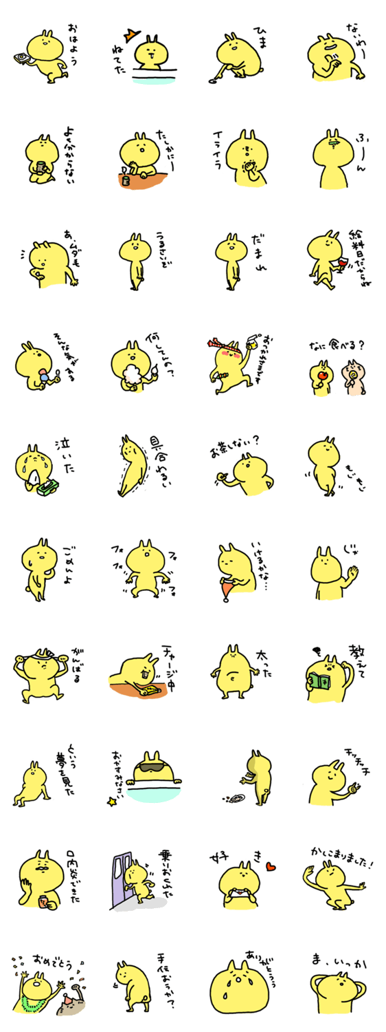 きいろいうさぎの気軽に使えるスタンプです。