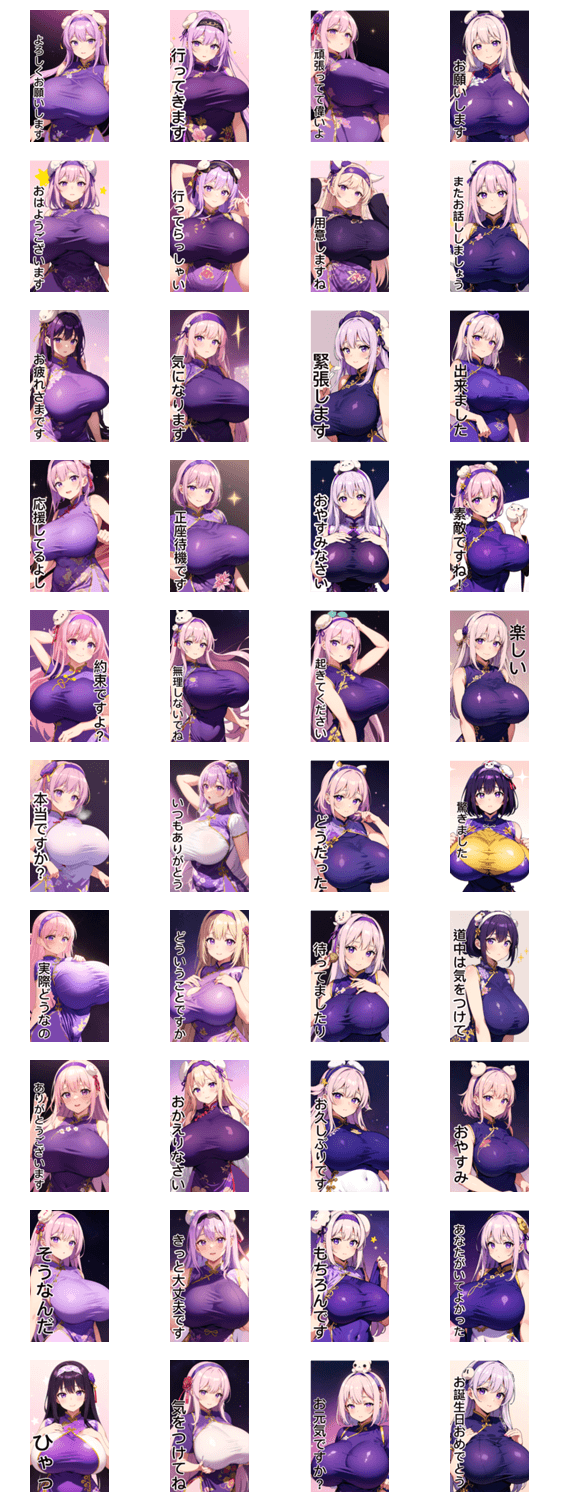 | スタンプ説明 | アニメキャラクター、甘い女の子、日常用語。 ※このスタンプはトークルームで大きく表示されるBIGスタンプです。 |